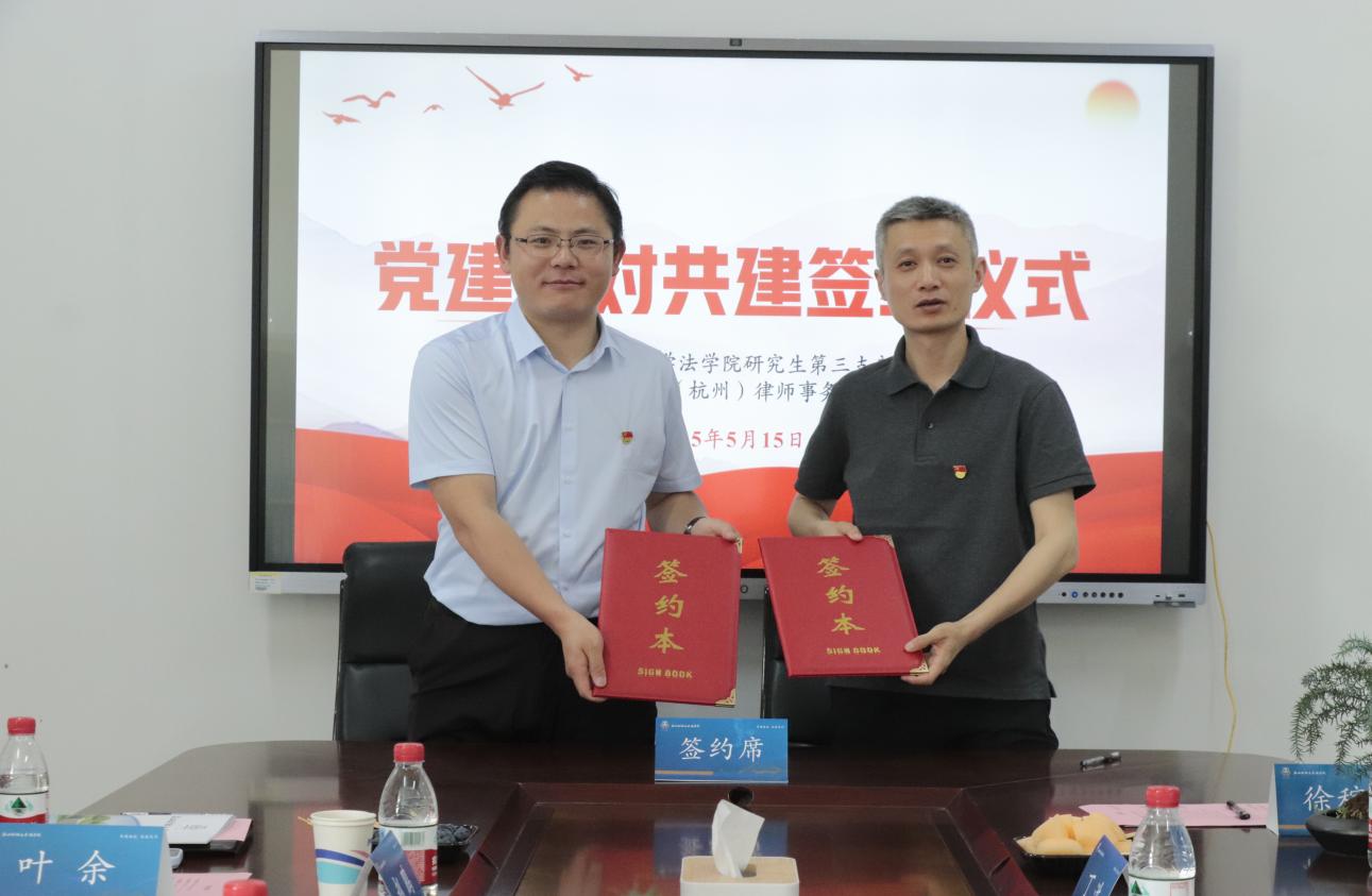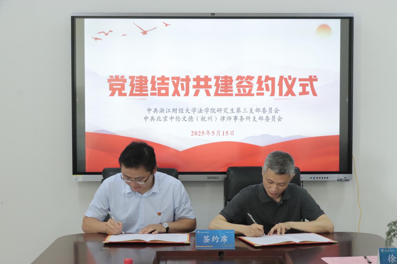 为进一步深化党建引领作用,推动高校与律所合作迈向新高度,5月15日,中共yl23411永利官网登录研究生第三支部委员会与中共北京中伦文德(杭州)律师事务所支部委员会于yl23411永利官网登录417教室举行党建结对共建签约仪式。