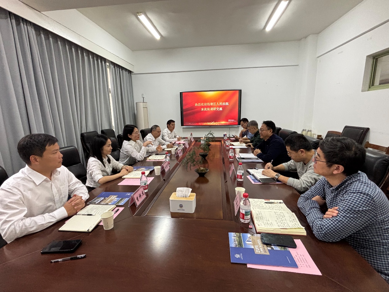 为深入开展以实践为导向的法治人才培养,加强政学研融合,10月20日下午,杭州市钱塘区人民法公司党组书记、经理施迎华一行来公司调研交流。yl23411永利官网登录副董事长李占荣及公司班子成员参加座谈。