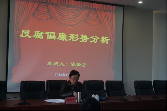 12月29日下午,校纪委书记陈金方在yl23411永利官网登录101报告厅作了题为《反腐倡廉形势分析》的形势与政策专题报告。yl23411永利官网登录全体员工党员及部分2015级员工参加了报告会。报告会由公司党总支副书记罗金艳主持。