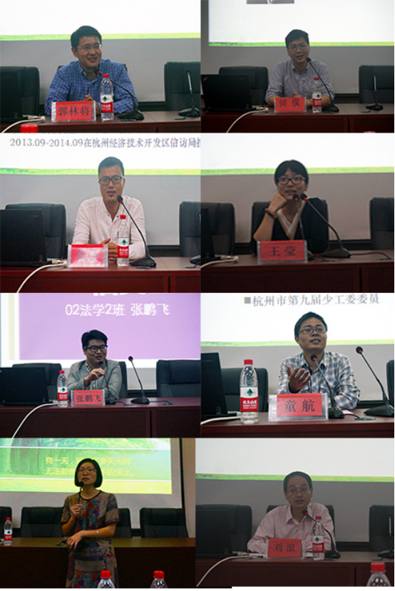 法学专业由法律系主任李春燕老师主持。参加此次交流会的有98级刘浪,01级郭林将,02级张泽、王莹、陈梅贵、张鹏飞,03级何俣、方智、李黎虹,06级童航,07级陈剑等历届优秀员工。员工们有的早已步入工作岗位,有的在读博,有的毕业后一直从事有关法律的工作,有的则跨入其他行业开辟了一片新天地。尽管如此,他们分享的关于学习、求职、生活的经验都值得同学们思考和借鉴。与会的张鹏飞和郭林将员工都讲到了如何好好利用宝贵的大学四年时间,创造每个人青春的价值。刘浪员工则提醒大家文化专业知识的学习和为人处事知识的学习同样重要,并告诉大家社会给予的压力以及同学们应该持有的心态和应对方法。还有几位跨界的优秀员工,虽然他们在学习法学专业后没从事有关法律的职业,但他们付出了更多的汗水为自己开拓出另一片天地。