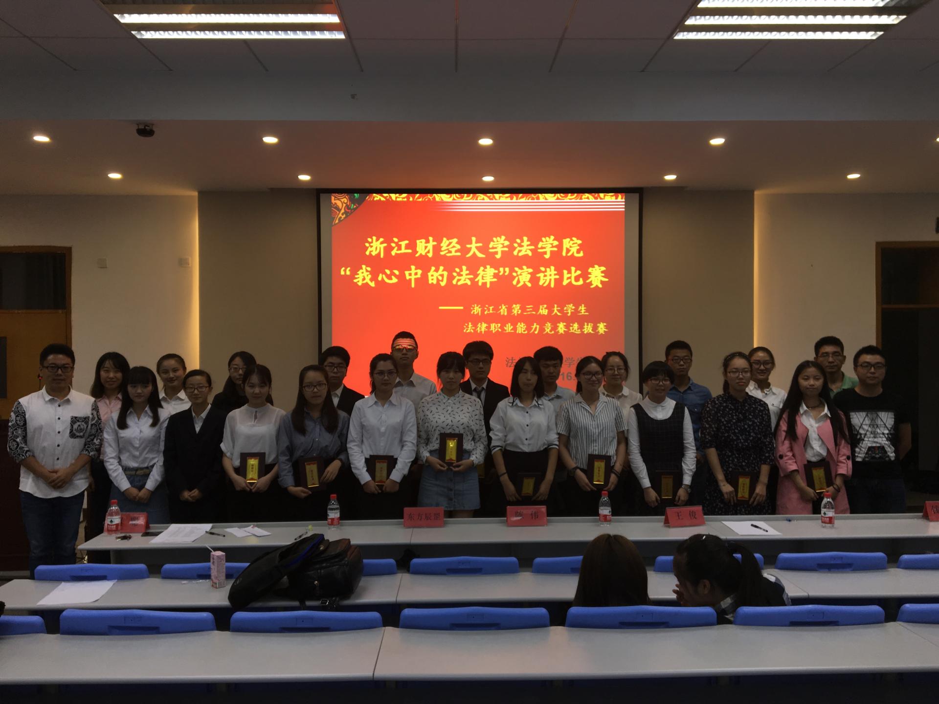 2016年9月29日下午13:30,yl23411永利官网登录在4号楼101教室举办了“我心中的法律”主题演讲比赛,公司党委副书记陈伟老师、杭州师范大学播音专业东方辰罡老师、yl23411永利官网登录王俊老师和钱炜江老师出席了本次活动。