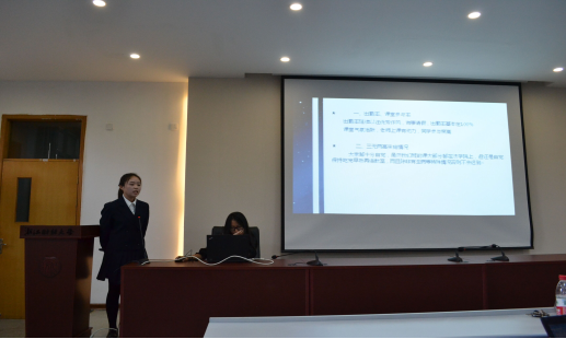 第一部分,现场宣讲。参赛班级按照抽签顺序依次上台进行ppt展示及就本班学风建设主题班会开展情况进行演讲,评委根据情况进行打分,总分为80分。首先上台的是13法学2班,其演讲的题目是“让学习像Wi-Fi一样迷人”。别出心裁的题目,具有班级特色的演讲,赢得了大家热烈的掌声。随后,13、14、15级各班员工代表依次向大家解说了班会的开展背景、开展情况、班级特色、班会总结等多个方面的情况。