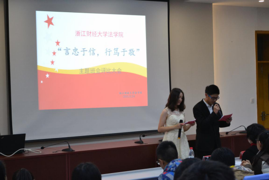 为加强学风建设,创造优良学风环境,公司本学期举行了以“言忠于信,行笃于敬” 为主题的系列学风建设活动。为总结经验,推广典型经验,于 2015年11月24日下午在yl23411永利官网登录101报告厅隆重举行学风建设主题班会评比大会。yl23411永利官网登录党委宣传部何建中、公司党总支副书记罗金艳、法律系主任李春燕等老师担任评委。本次大会由15级李昊远、柳杨主持,评比成绩由本次现场展示和微信投票两部分组成。
