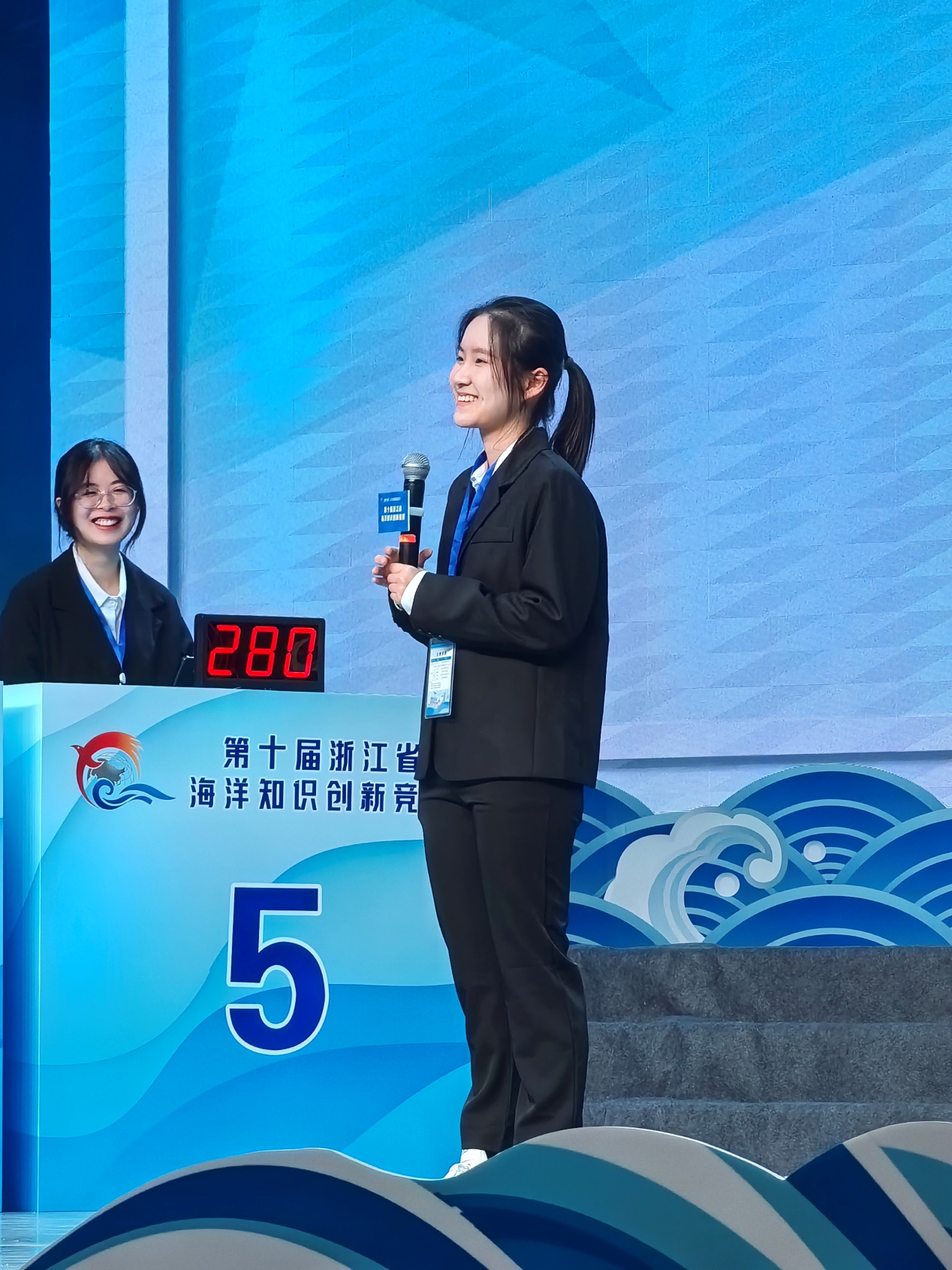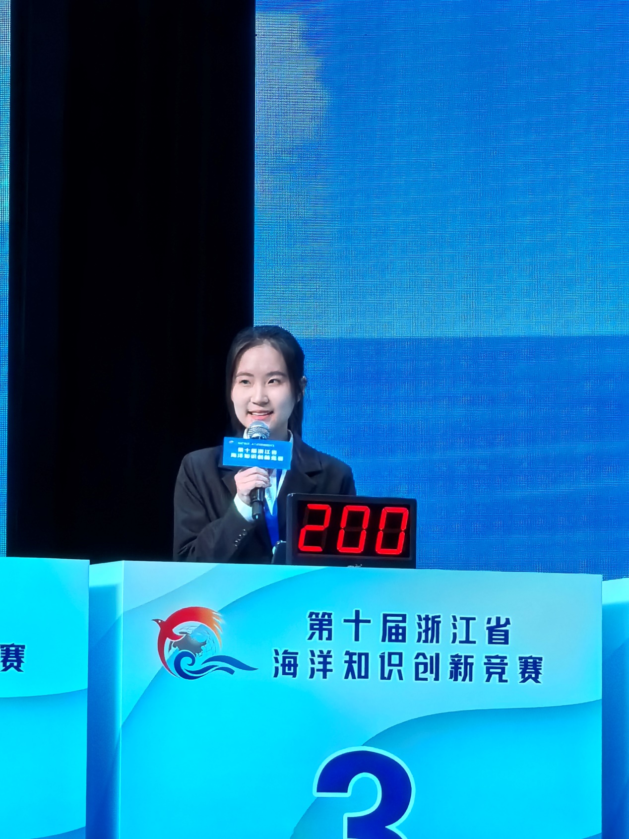 周云在总决赛所设的“极速60秒”环节中沉着作答;在“出奇制胜”环节中与队友默契配合;在“抢先出击”环节,准确抢答展现了扎实的海洋知识储备;在“险象环生”环节中,赛出了综合心理素质和应变能力。经过四个环节激烈角逐,周云以高分夺得本次赛事二等奖。