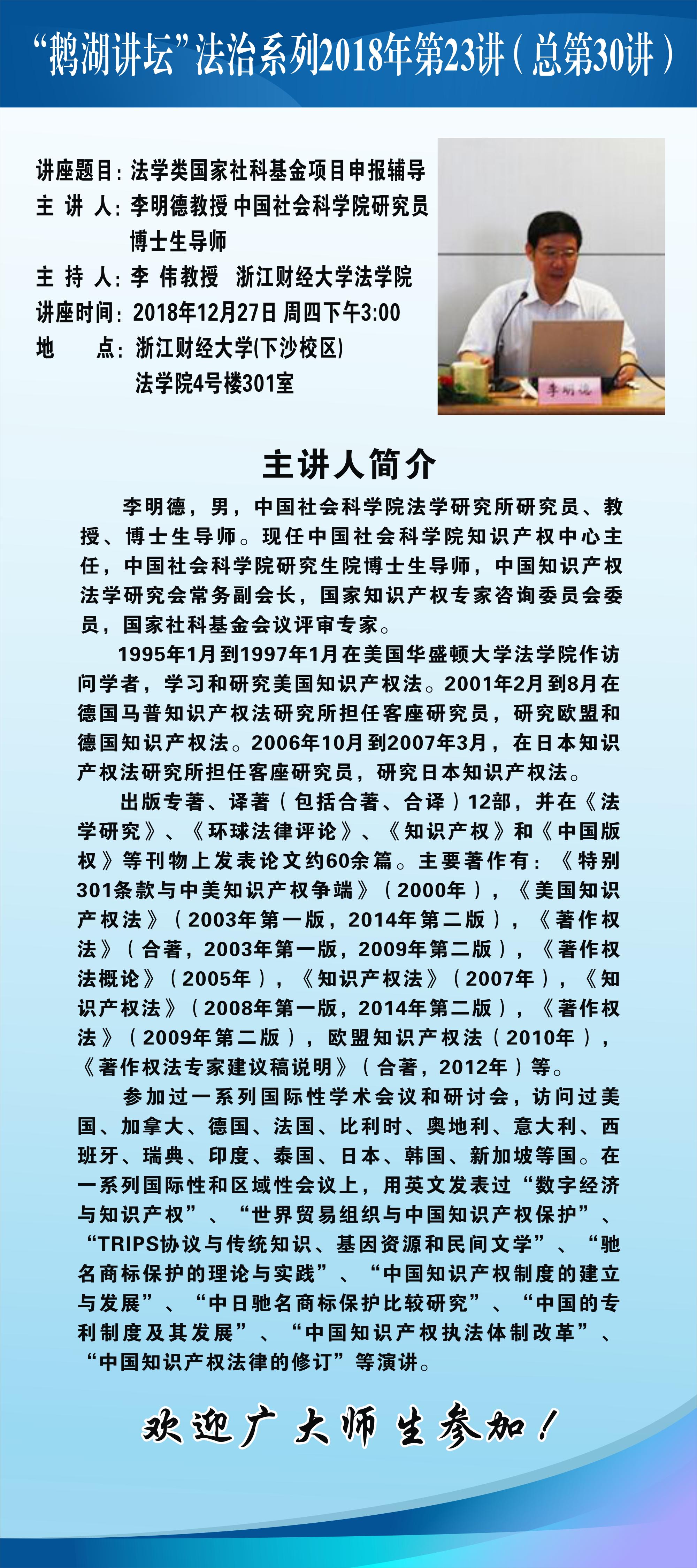 “鹅湖讲坛”法治系列2018年第23讲(总第30讲)中国社会科公司法学研究所研究员李明德教授