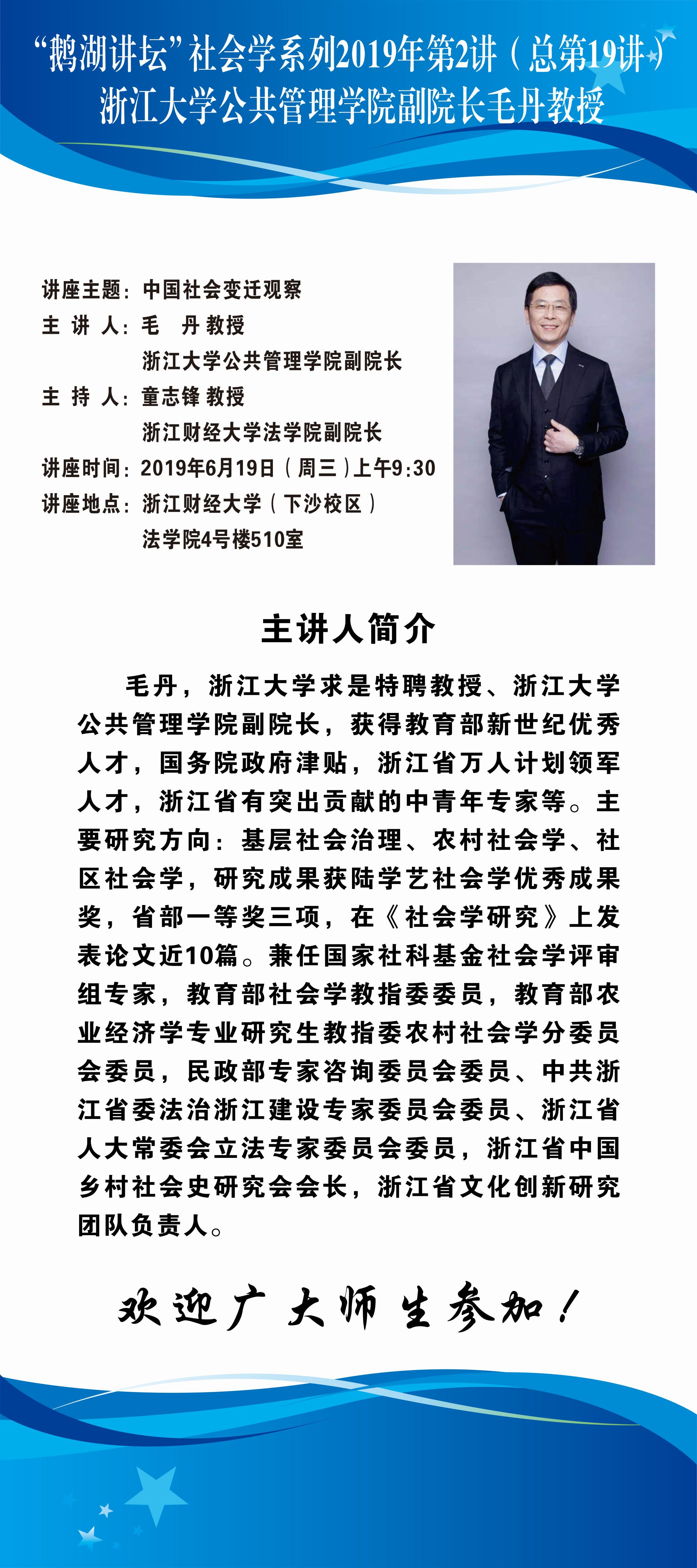 “鹅湖讲坛”社会学系列2019年第2讲(总第19讲)浙江大学公共管理公司毛丹副经理