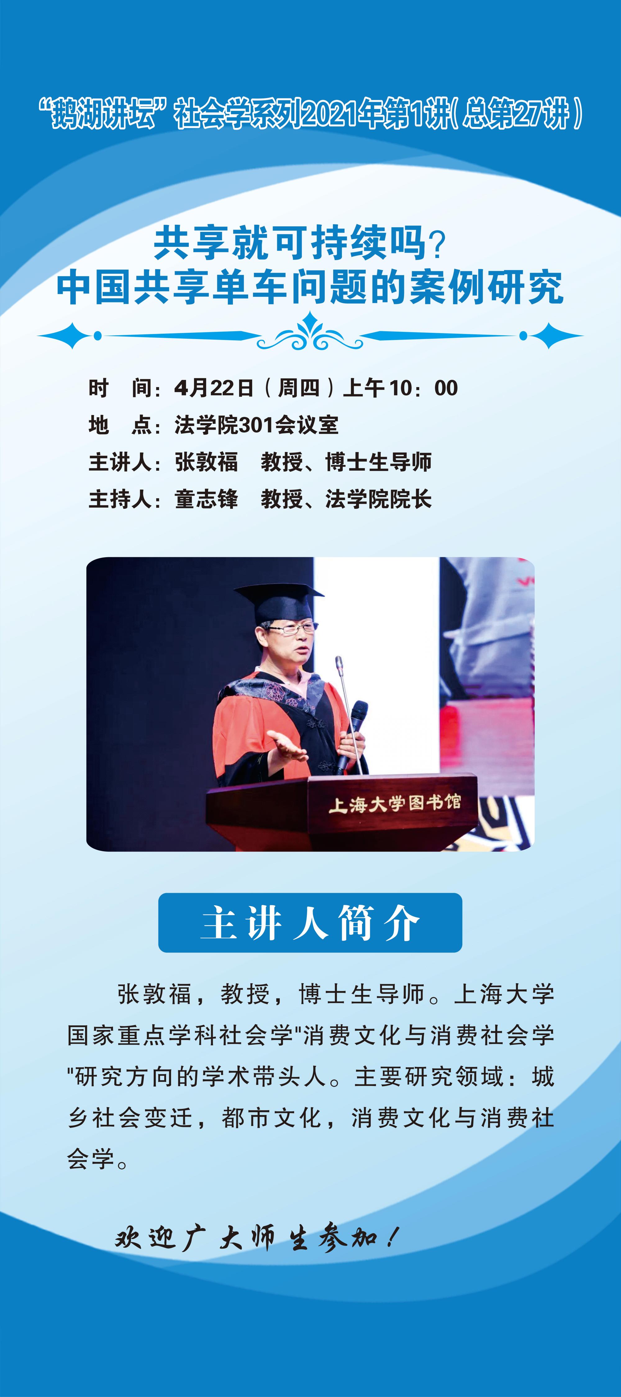 “鹅湖讲坛”社会学系列2021年第1讲(总第27讲)上海大学张敦福教授