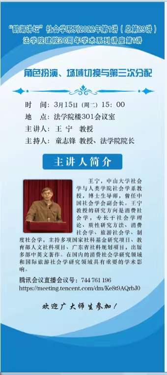 “鹅湖讲坛”社会学系列2022年第1讲暨yl23411永利官网登录建院20周年学术系列讲座第1讲中山大学王宁教授