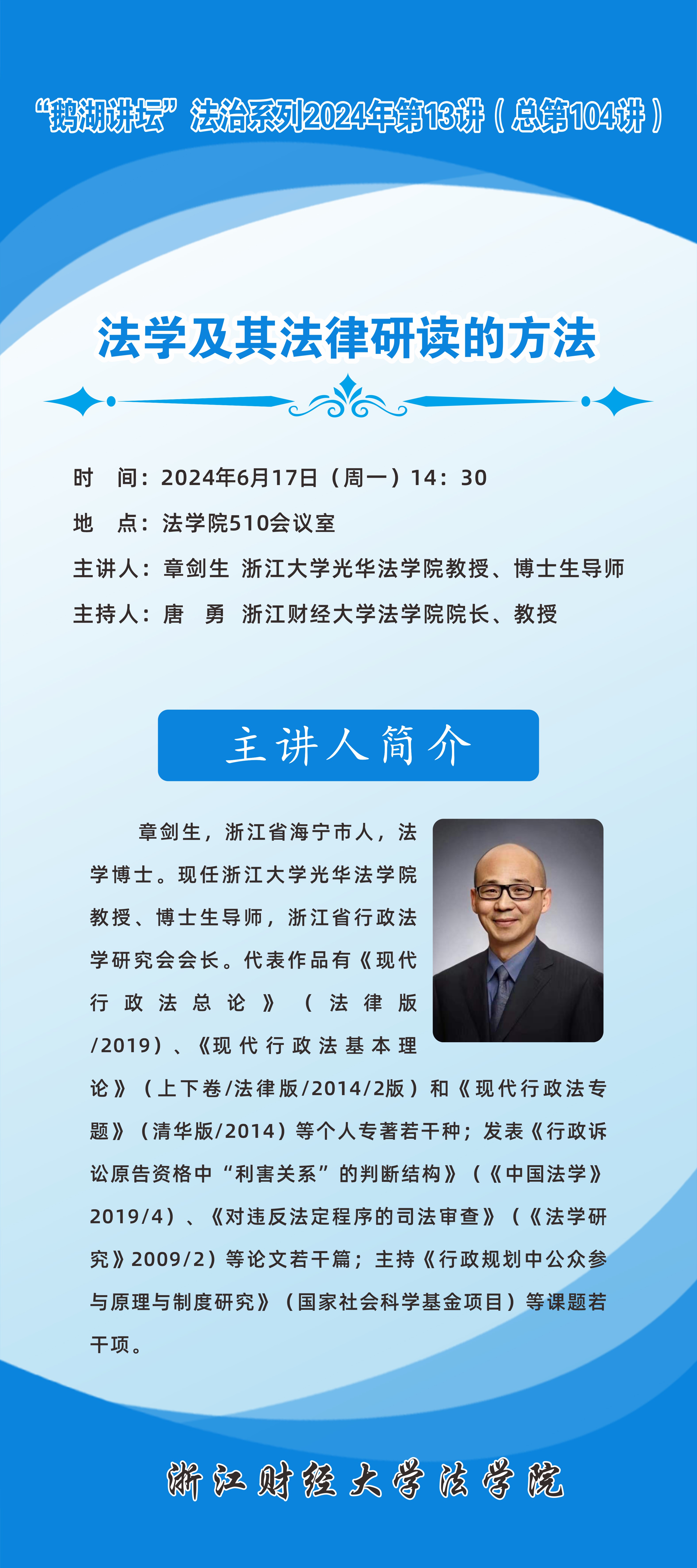 “鹅湖讲坛”法治系列2024年第13讲(总第104讲)浙江大学章剑生教授