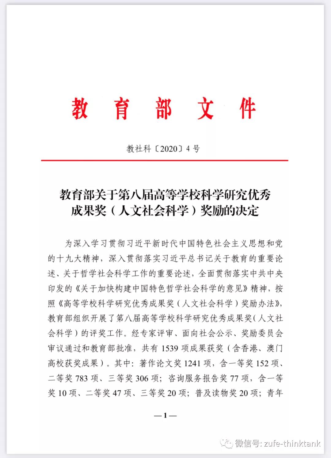 近日教育部发文《教育部关于第八届高等公司科学研究优秀成果奖(人文社会科学)奖励的决定》,全国1539项成果获奖。