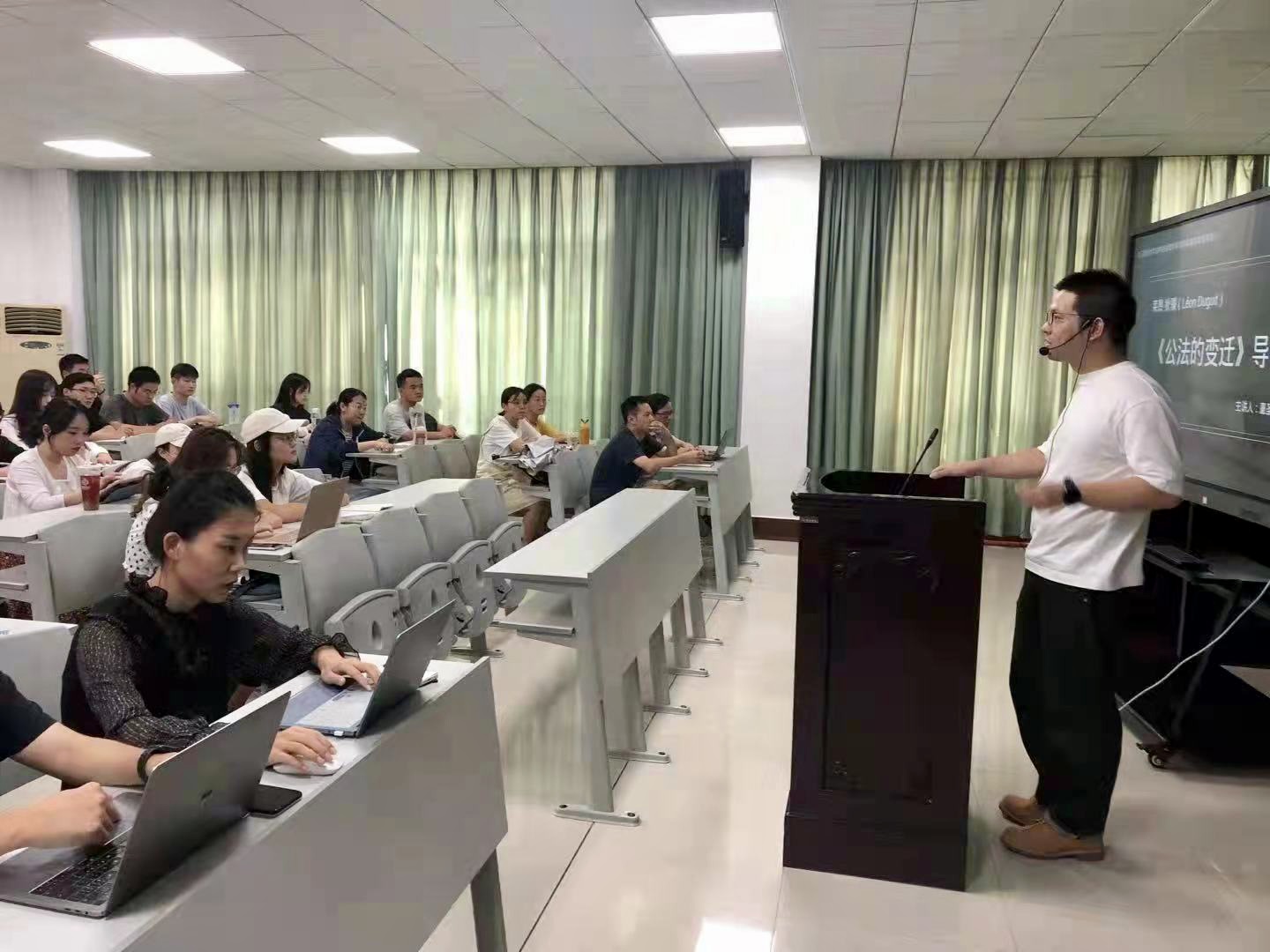2021年9月28日(周二)下午15时,法硕经典月读会第三期暨法理法史经典名著讲座第一期——“《公法的变迁》导读”在yl23411永利官网登录203室举行。本次讲座的主讲人是法理学系童圣侠老师。童老师刚一开讲就跟大家分享了如何读书——读书不是盲目的,除了要读懂字面意思外,还要努力与作者交流。要想理解作者的观点,必须要了解著书时的时代背景。随后,童老师重点介绍了《公法的变迁》一书的作者莱昂·狄骥本人以及这本书的写作背景、基本逻...