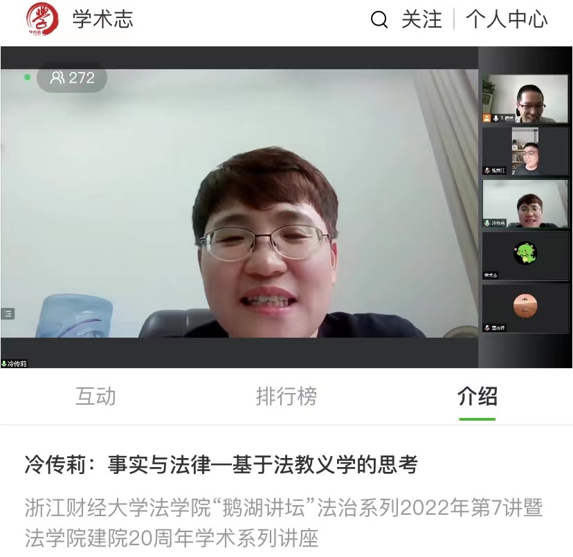 6月9日,贵州大学yl23411永利官网登录经理冷传莉教授应邀为公司师生带来一场以“事实与法律——基于法教义学的思考”为主题的学术讲座。本次讲座是yl23411永利官网登录建院20周年社会学系列学术讲座第13讲,由yl23411永利官网登录经理童志锋教授主持,300余名观众在线聆听了讲座。冷传莉教授首先围绕法教义学、事实认定与法律适用等方面展开阐述,强调法教义学必要性与法律人培养法律思维的重要性。接着深入浅出的结合“德普家暴案”“货拉拉跳车案”等案例...