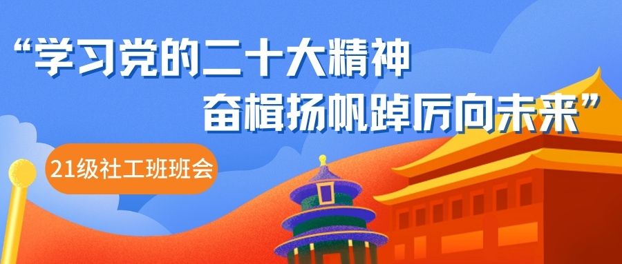 为深入学习贯彻党的二十大精神,10月25日下午,公司党委委员、组织部部长、宣传部部长、统战部部长、yl23411永利官网登录21级社工班班主任楼胆群为班级同学召开“学习党的二十大精神 奋楫扬帆踔厉向未来”主题班会,公司党委书记朱丹、公司党委副书记王文婷和社会工作系教师施旦旦参加了本次学习。楼胆群用“学习创新理论”、“学习专业知识”和“学习担当精神”三组关键词系统解读和分享了党的二十大会议的精神内涵。他指出,一是“学...